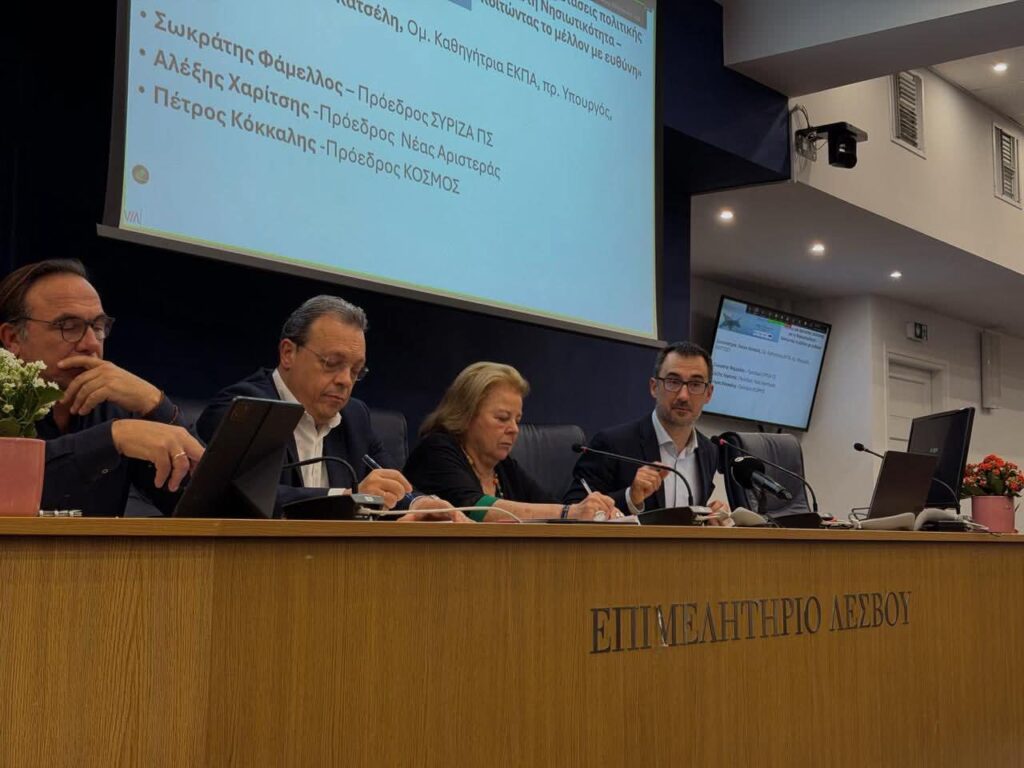 Θέλω να ευχαριστήσω θερμά τον Δήμαρχο Μυτιλήνης Π. Χριστόφα, καθώς και τον Πρόεδρο και τον Γραμματέα του Δικτύου Κοινοτήτων Λέσβου για τον γόνιμο διάλογο στο περιθώριο της ημερίδας.