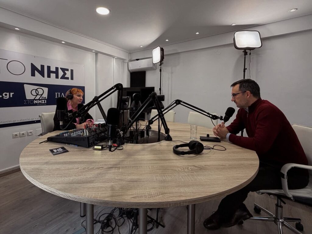 Σήμερα το πρωί βρέθηκα στο στούντιο του ραδιοφωνικού σταθμού «Το Νησί» και συνομίλησα με την δημοσιογράφο Ανθή Παζιάνου. Την ευχαριστώ γι’ αυτή την πολύ ζωντανή συνέντευξη. Εγχειρήματα περιφερειακών μέσων ενημέρωσης και μάλιστα συνεταιριστικού χαρακτήρα, όπως είναι «Το Νησί» είναι ζωτικής σημασίας για την περιφέρεια και ειδικά για τα νησιά μας.