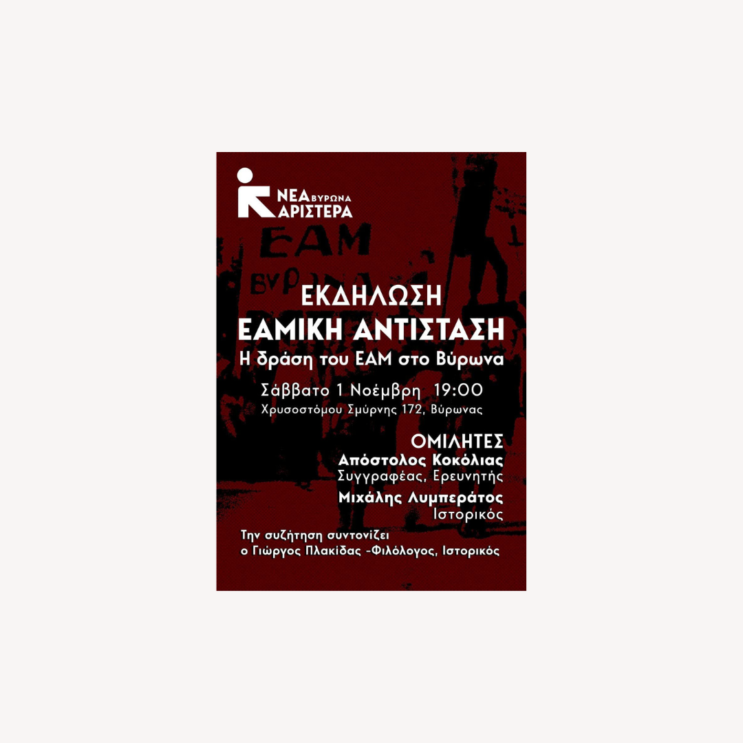 Εκδήλωση Νέας Αριστεράς Βύρωνα: ΕΑΜική Αντίσταση – Η δράση του ΕΑΜ στον Βύρωνα