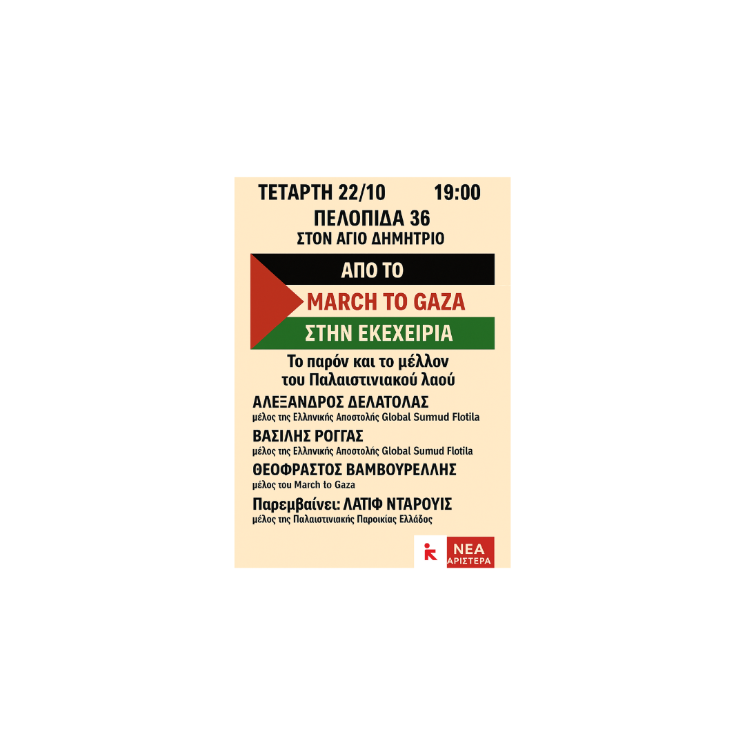 Η Νέα Αριστερά Αγίου Δημητρίου διοργανώνει εκδήλωση: